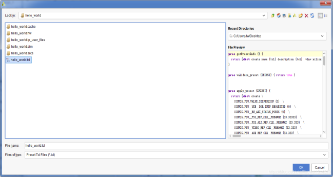 导入 hello_world.tcl配置文件,点击OK