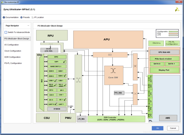 开发环境:vivado 2017.4,开发板型号:米尔MYD-CZU3EG, 主芯片XCZU3EG-1SFVC784。这个系列 板子还有4EV,5EV等版本,手里的3EG版本不支持SFP,因此板上相应接口(白色部分)是空贴的。
