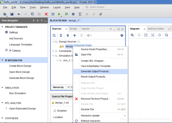 右击design_1 --> Generate Output Products