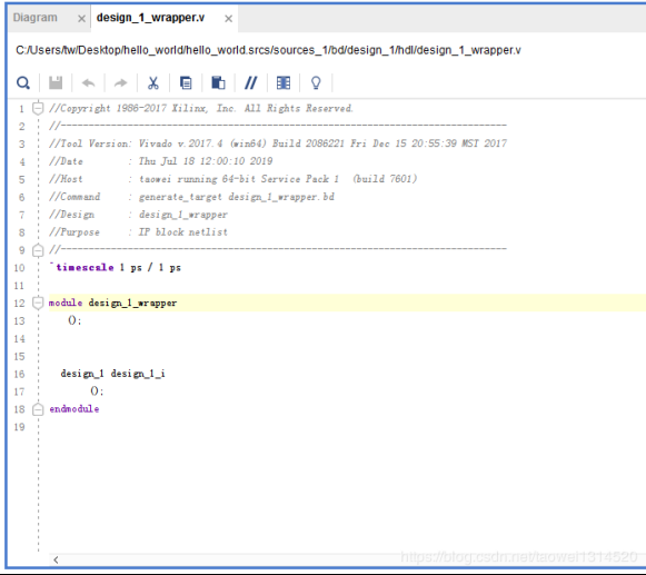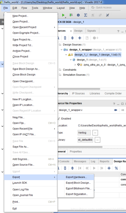 右击design_1-->Create HDL Wrapper