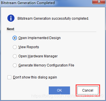 bit生成成功,点击Cancel关闭对话框