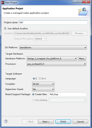 添加工程名fsbl,点击Next