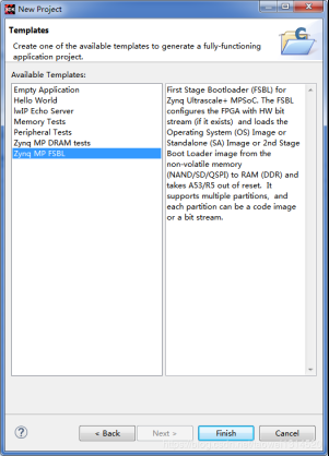 选择Zynq MP FSBL,点击Finis