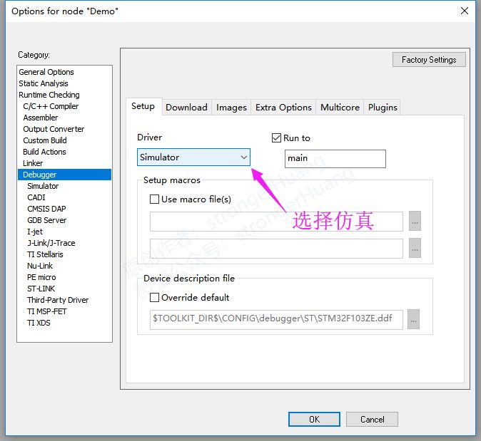 基于前面使用STM32CubeMX生成工程,修改此处仿真相关配置即可。
