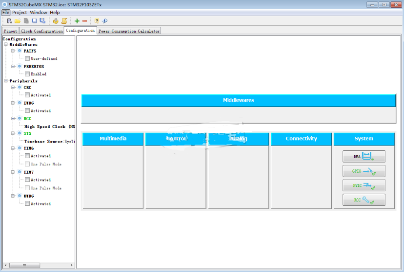 微控制器图形化配置外围设备和中间件的功能模式和初始化参数