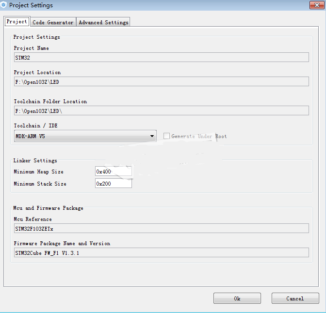 点击Project –>Generate Code或者点击快捷图标生成工程代码。