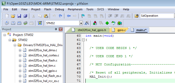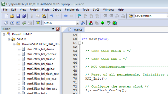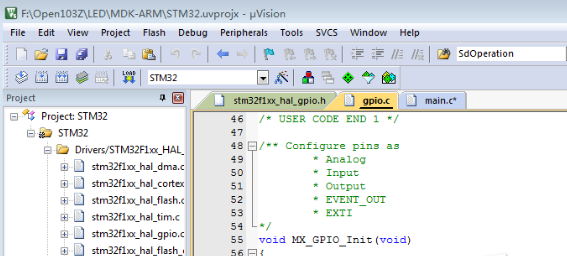 点击Open Project打开工程。到此就配置好工程外设初始化。