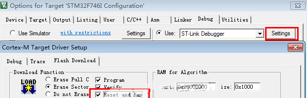 点击Settings->Flash Download勾选 Reset and Run选项。这样程序下载后自动启动运行,不用再按一下复位或者重新上电才能运行。