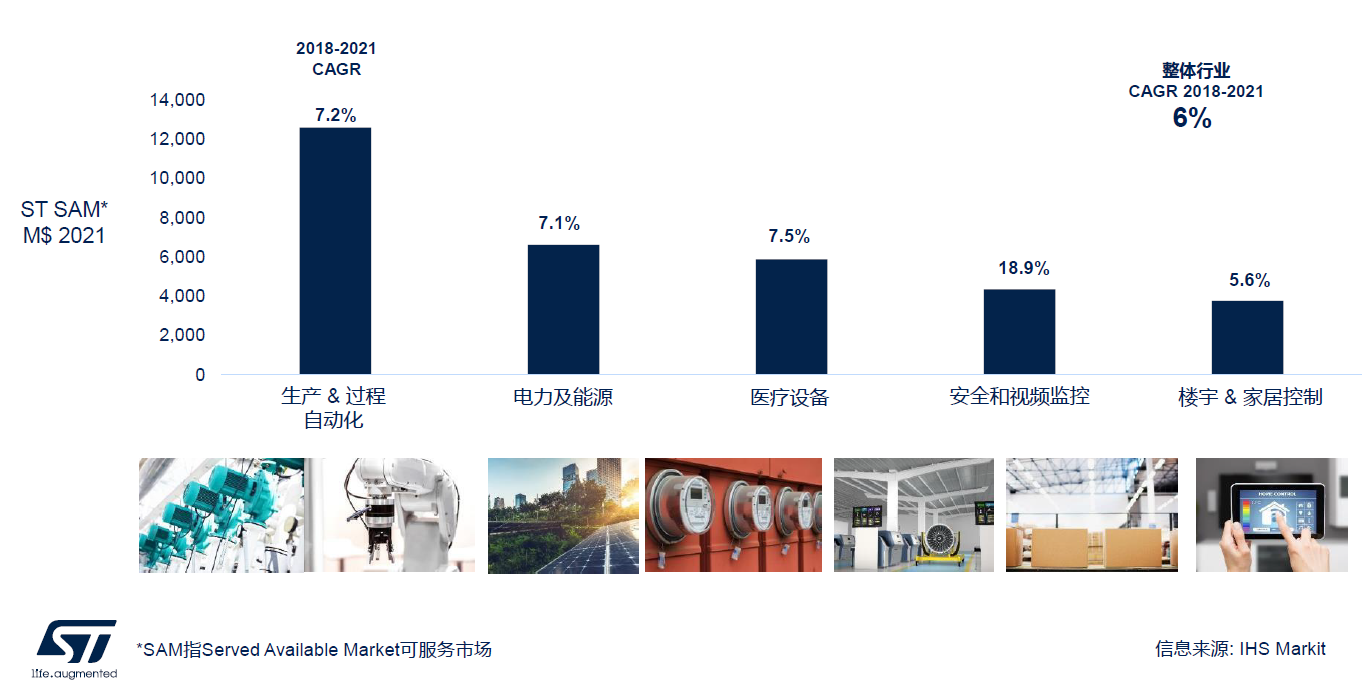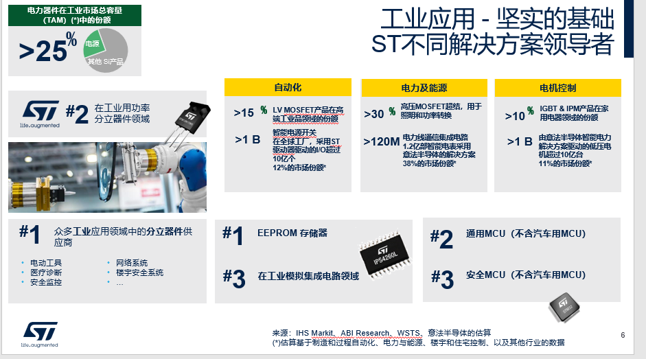 图3:ST在工业市场不同细分领域的市场份额情况。
