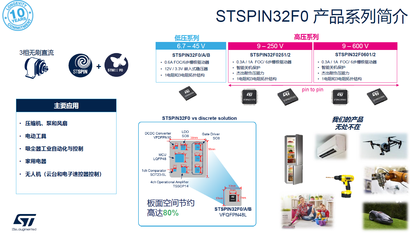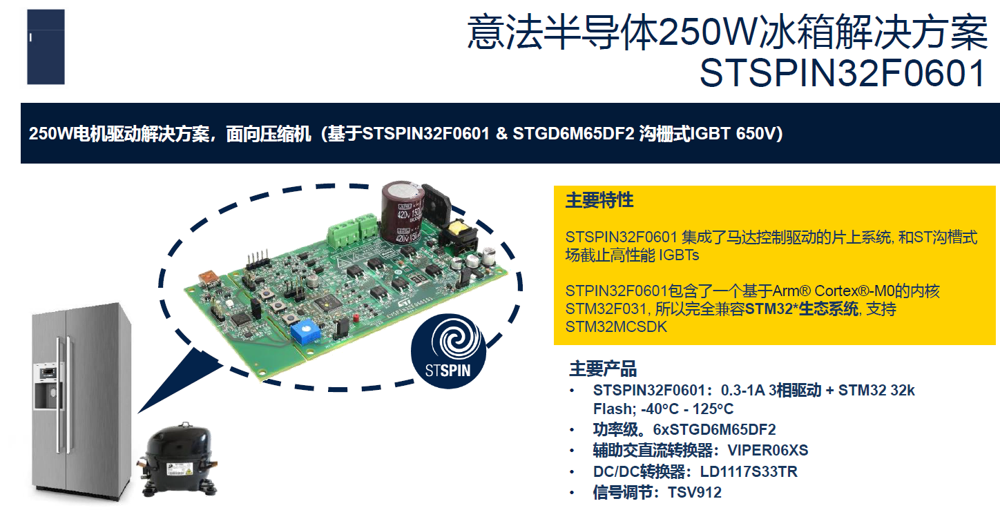 在传统的冰箱市场,如今冰箱能效标准已经提高到A类以上,“这意味着我们的ST功率器件、STSPIN、STM32可以开始大展拳脚。”他表示。