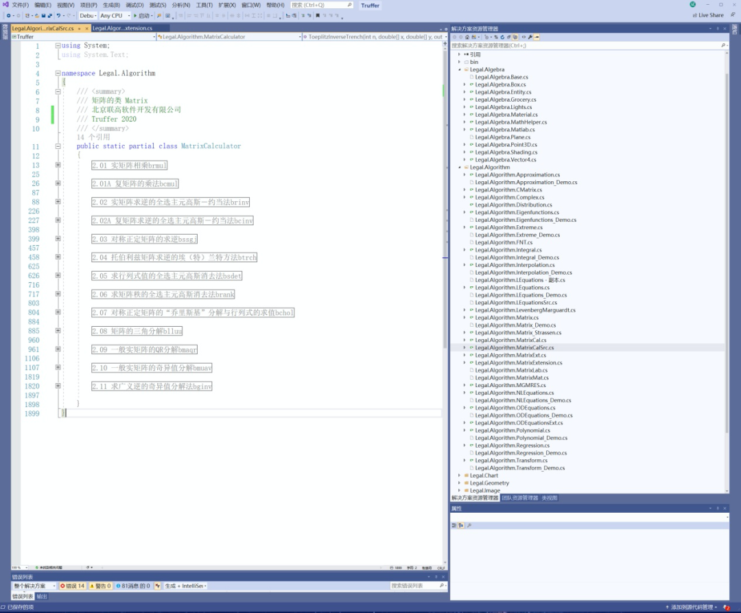 根据网友接收到的源码,Truffer的三个源文件分别是CMatrix.cs,Complex.cs,Matrix.cs,三份文件大小分别是42K、16K和39K。按照Truffer所说,分别是复数矩阵、复数和实数矩阵的基本运算。