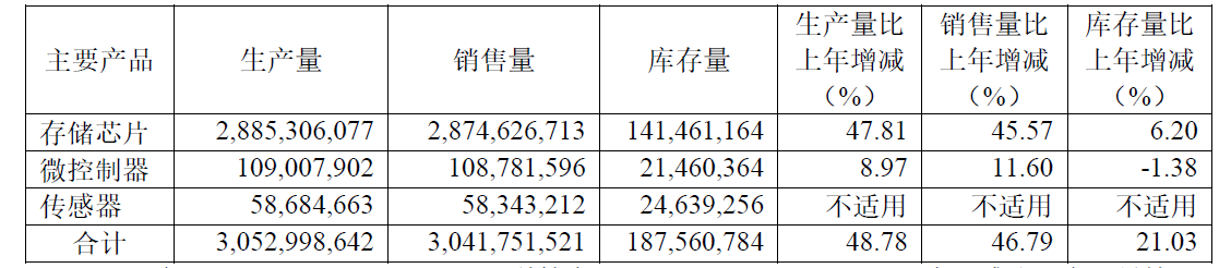从产销情况看,MCU的年生产量为1.09亿颗,销售量为1.088亿颗。据年报显示,其MCU产品,累计出货数量已超过3亿颗,客户数量超过2万家。