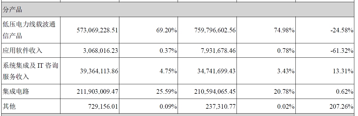 东软载波在2019年实现营业收入8.28亿元,同比减少18.27%;分产品来看,该公司集成电路产品的营业收入为2.12亿元,同比增长0.62%,毛利率为32.31%。