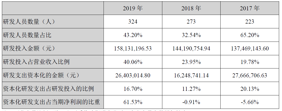 在研发投入方面,四维图新2019年的投入金额为13.1亿元,研发人员为2718名。研发投入占营业收入的比例为56.67%。