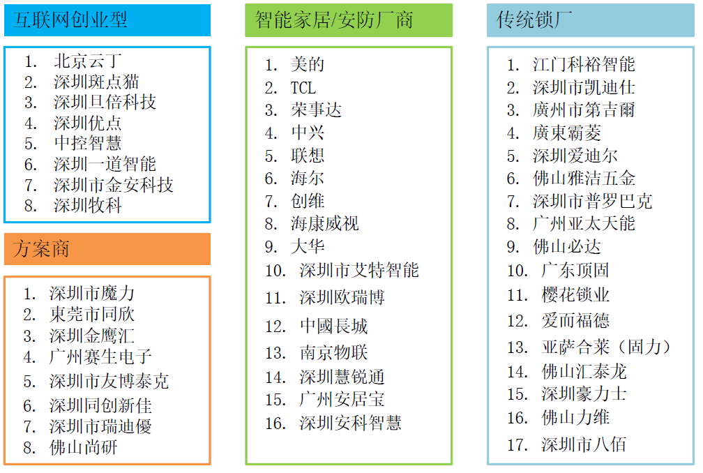 图8:智能门锁四大阵营中的代表企业。(图片来源:YiKa Wu)