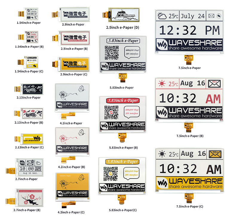 可驱动微雪多款SPI接口电子墨水屏裸屏 可接入Raspberry/Arduino/Nucleo等主控板