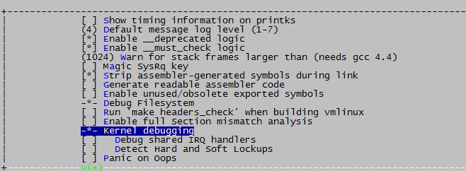 (7)选择“kernel hacking”>“Kernel debugging”选项,其符号为“DEBUG_KERNEL”。该选项默认是开启的。