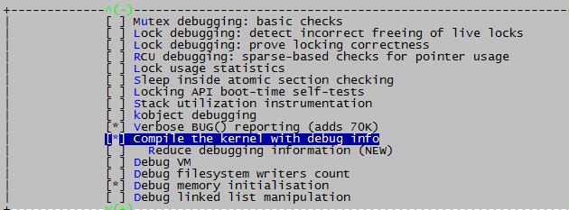 (8)选择“kernel hacking”>“compile the kernel with debug info”选项,符号为“DEBUG_INFO”。