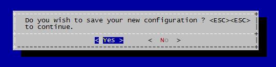 (9)配置完成以后,按两次键,提示退出时选择< Yes >保存并退出。