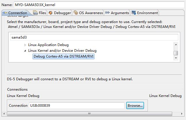 连接“connections”点击“browse…”选择搜索到的DSTREAM仿真器。
