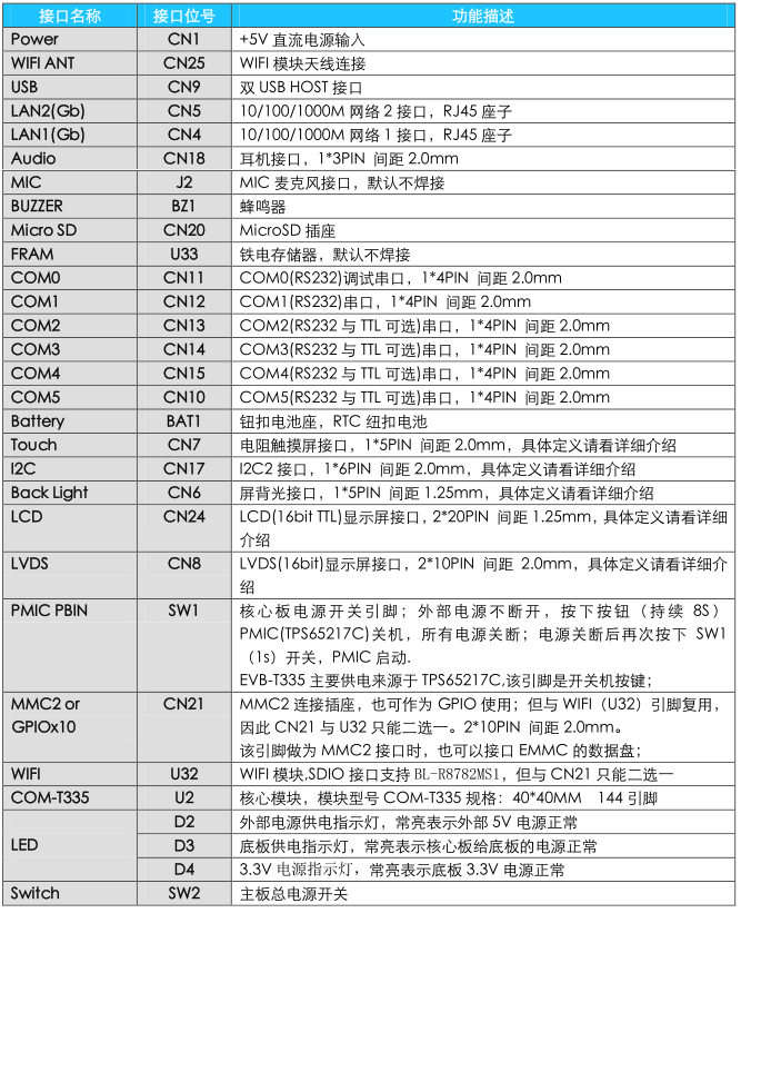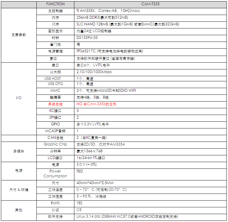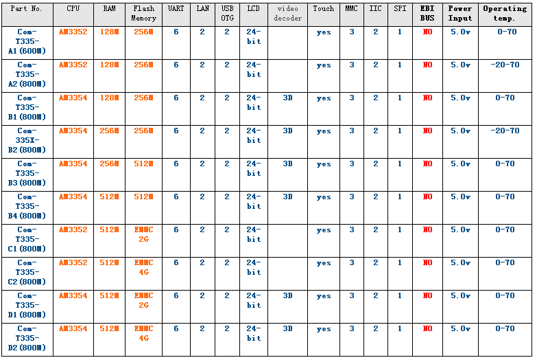2.CoM-335x带GPMC总线,CoM-T335不带的。