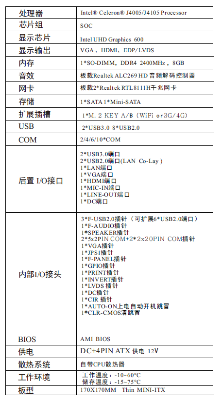 支持Intel® Celeron® J4005/J4105 Processor处理器