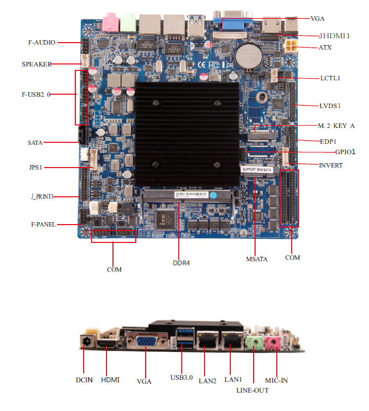 板载VGA 、HDMI、EDP/LVDS 显示输出