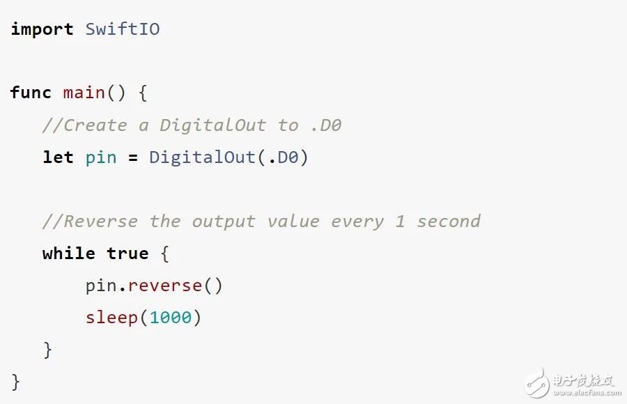 至此,开发者仅需在代码里import SwiftIO(类似C语言的#include),便可以利用其中的API来方便的操作底层硬件了。