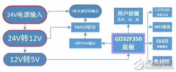 本作品主要用GD32F350R8做了一个光源控制器用于为机器视觉相机提供稳定的光源控制,增加了外部触发功能可外接24V信号(光电传感器或PLC输入),一路24V输出信号,用于触发相机拍照。由于这边应用场景的多样性,所以得增加用户流程配置即可分别控制四路光源亮多久啥时候点亮,由于光源寿命问题以及光源一般比较刺眼所以增设参数掉电保持功能,另外还外延了WIFI功能。现场应用场景也在视频中有做测试。
