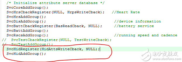 svc_hid.h里面声明了SvcHidRegister和SvcHidAddGroup,而hid_api.h里面声明了函数HidAttsWriteCback。