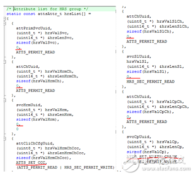 并不是所有的service都需要注册读写回调函数,只有当Attribute list中的Attribute settings项出现ATTS_SET_WRITE_CBACK或者ATTS_SET_READ_CBACK时才需要。以fit工程为例,heart rate的Attribute list如下: