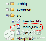 打开工程后,整个工程的main函数入口在src目录下。(本文的编译环境用的是keil)图2是打开没有移植freertos系统的工程目录,假如移植了freertos,也是同样在src目录下,只是freertos系统的main函数入口在freertos_fit.c文件中,但具体的线程对应的代码在radio_task.c中,直接到对应线程的C文件中查看即可。
