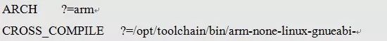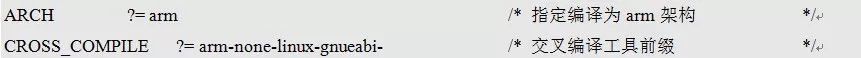 如果交叉编译工具链未设置环境变量则CROSS_COMPILE设置为交叉编译工具链的绝对路径,设置如下。