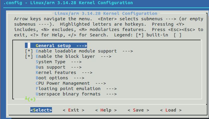 配置完成后,选择保存,然后退出。配置后会生成.config文件,该文件保存了配置信息,供Makefile在编译内核时使用。