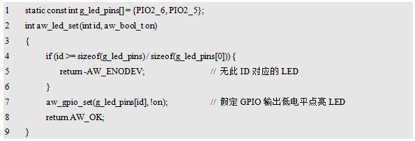 程序清单13.1 aw_led_on()和aw_led_off()接口的实现