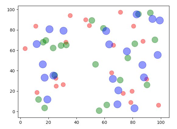 参数c表示点的颜色,s是点的大小,alpha是透明度