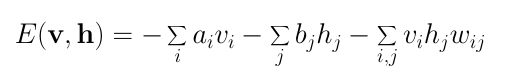 由定义可知,能量函数的值取决于变量/输入状态、隐藏状态、权重和偏置的配置。RBM的训练包括为给定的输入值寻找使能量达到最小值的参数。