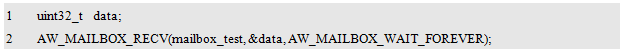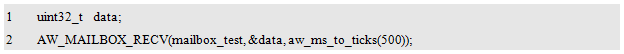 AW_MAILBOX_NO_WAIT。则任务不会被阻塞,立即返回,但不会成功获取到消息,此时,AW_MAILBOX_RECV()的返回值为: