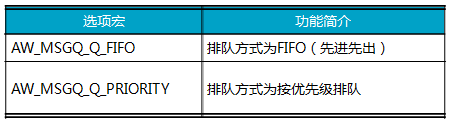 表10.10 消息队列初始化选项宏(aw_msgq.h)