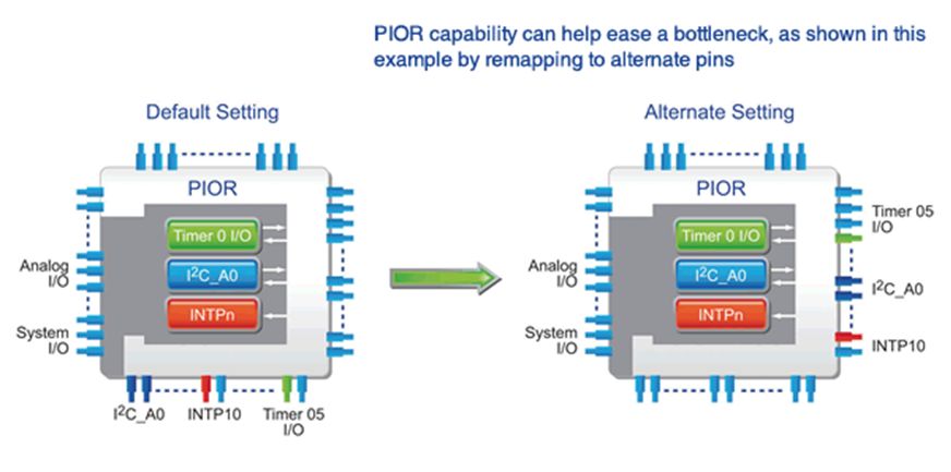 另外,外设I / O重定向(PIOR)功能,可将外设功能重新映射到其他备用端口,大大提高了外设在硬件开发中的灵活性。