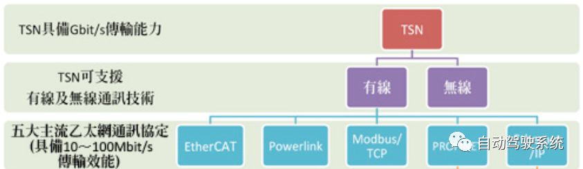 TSN技术应用由来已久,可能对于汽车领域来说会比较陌生,它是一项从视频音频数据领域延伸到汽车领域,并进一步推广至工业领域的技术。TSN最初来源于互联网的视频领域的应用需求,当时该技术被称为AVB,高清的数据需要较高的带宽和最大限度的实时,借助AVB能较好的传输高质量音视频。对于ADAS而言,传统的CAN总线已经远远不够,极低延时的高带宽以太网传输技术应运而生,即TSN。