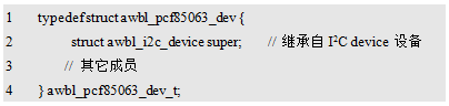 由此可见,struct awbl_i2c_device类型是从AWBus-lite基础设备类型派生而来的,当前并未添加任何其它成员,主要是为了方便后续扩展,增加I²C总线从机设备相关的私有成员。