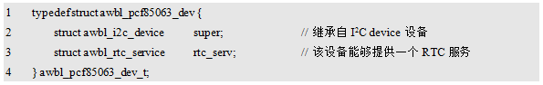 确定驱动对应设备的类型,是普通设备还是特殊的总线控制器设备。对于PCF85063设备,其不能再继续扩展下游总线,仅能提供RTC功能,是普通设备,即对应的设备类型为:AWBL_DEVID_DEVICE。