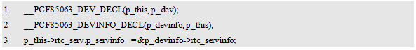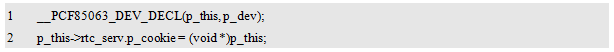 程序中,将p_cookie强制转换为指向设备自身的指针。这是由于在为RTC服务中的p_cookie成员赋值时,往往将其赋值为指向设备自身的指针,下一小节将详细介绍。