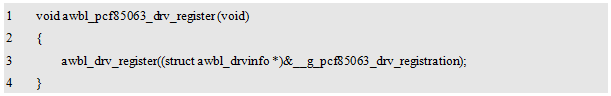 基于此,基础驱动信息中p_drvname的值为:AWBL_PCF85063_NAME。