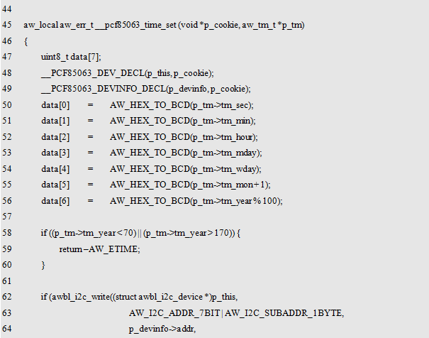 程序清单13.78 PCF85063驱动源文件(awbl_pcf85063.c)