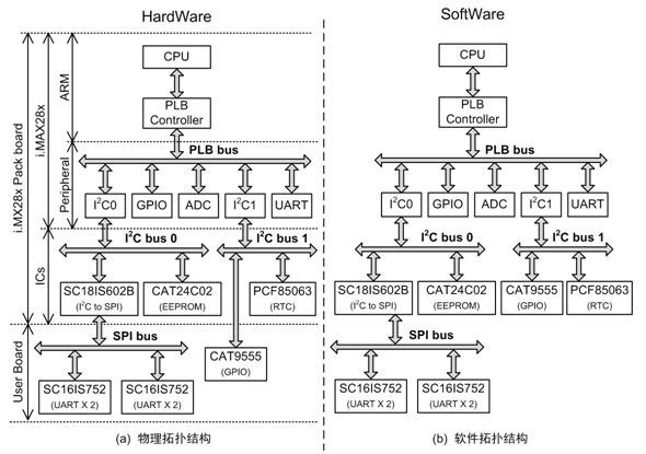 例如,在图12.1(b)所示的结构图中,若需要使用SC16IS752设备,则必须使能SC16IS752设备的父总线设备:SC18IS602B设备,同时,还需使能SC18IS602B设备的父总线设备:I²C0设备。