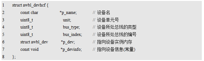 程序清单12.2 struct awbl_devhcf类型定义(awbus_lite.h)