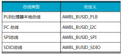 例如,i.MX28x的片上I²C1设备,其由CPU直接控制,挂接在PLB总线上,因此,对于I²C1设备,bus_type的值为:AWBL_BUSID_PLB。