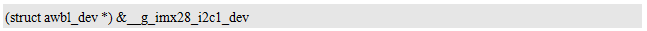 其地址&__g_imx28_i2c1_dev即可作为设备描述中p_dev的值。虽然其类型与p_dev的类型并不相同,但由于struct awbl_imx28_i2c_dev类型继承自struct awbl_dev类型,是基础设备类型的一个子类,可以将子类转换为父类使用,例如,将p_dev设置为: